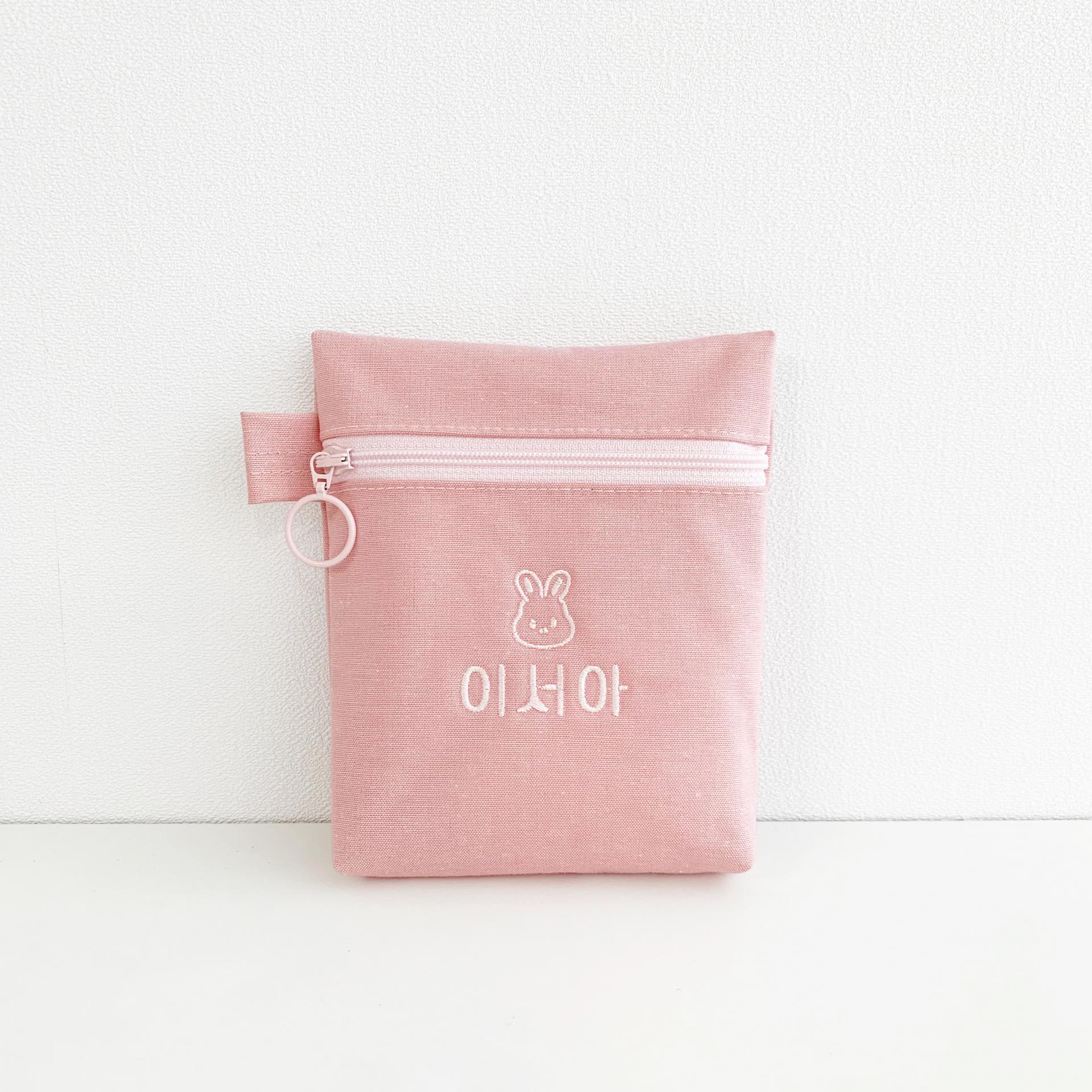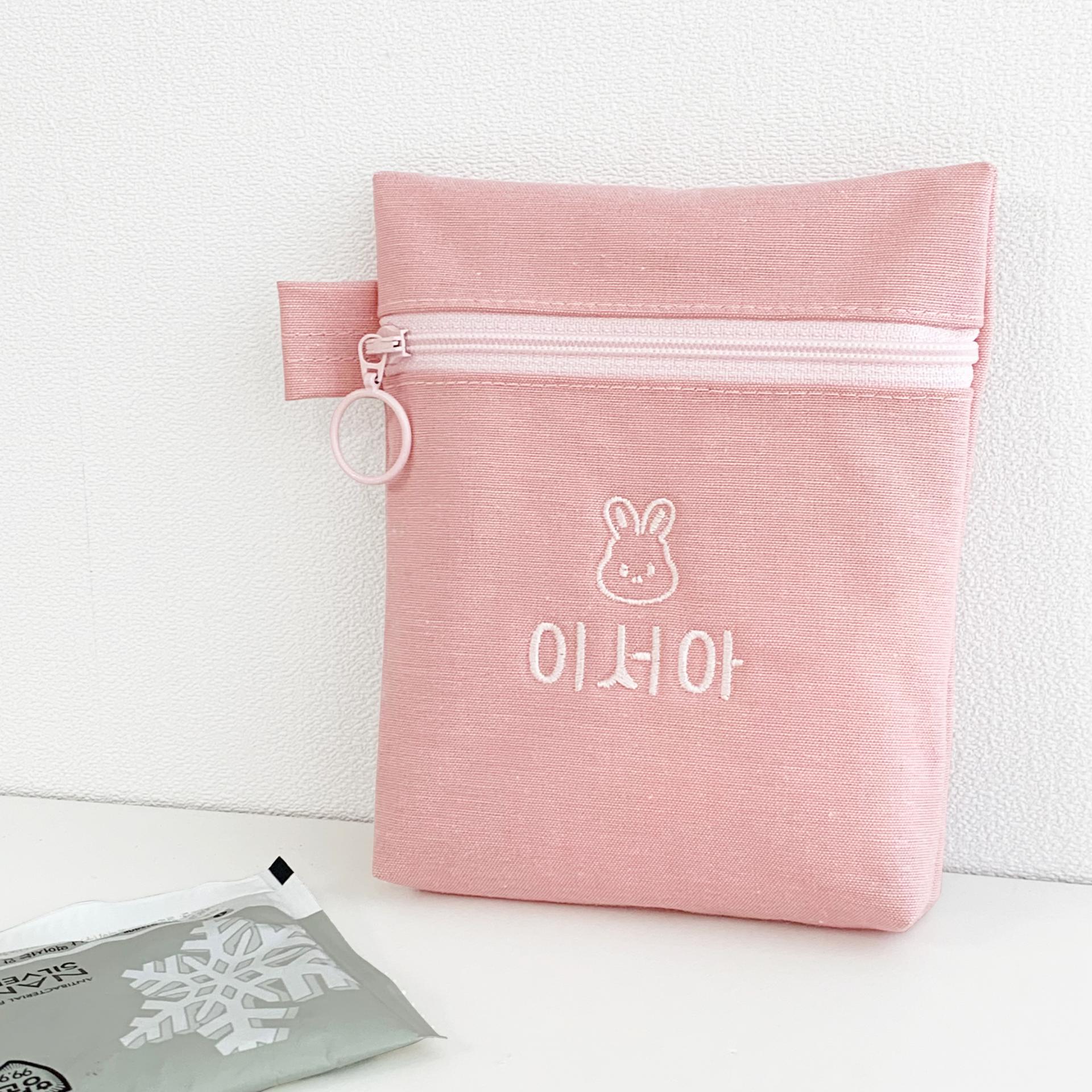 홑겹으로 제작되어 파우치 바깥은 면 100% , 내부는 친환경 방수코팅 처리를 하였습니다.