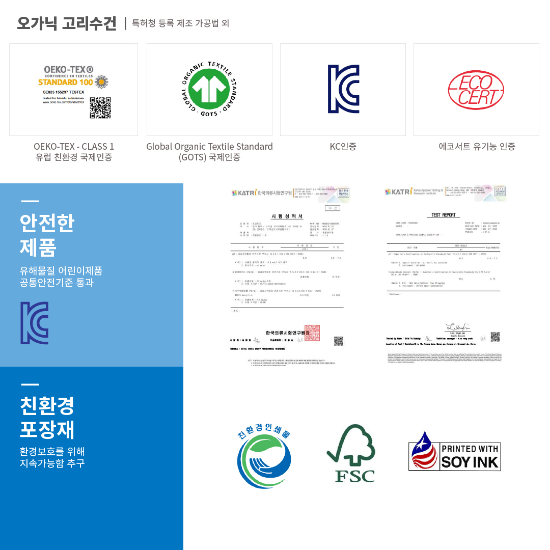 [ 친환경 오가닉 인증을 받은 안전한 수건 ]